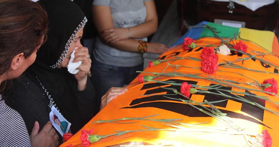 Tabutların taşındığı sırada üzüntü öfkeye dönüştü. 'Yaşasın halkların kardeşliği', 'Şehitlere sözümüz devrim olacak' , 'Barış kazanacak', 'Katil devlet hesap verecek', ' Hükümet istifa' sloganlarının yanı sıra AK Parti ve Cumhurbaşkanı Erdoğan aleyhine sloganlar atıldı. Tören sırasına cami yanındaki alanda 1 Kasım seçimleri için asılan AK Parti pankartı vatandaşlar tarafından söküldü. Pankartın sökülmesine halk, ıslıklar, alkışlar ve sloganlarla destek oldu.