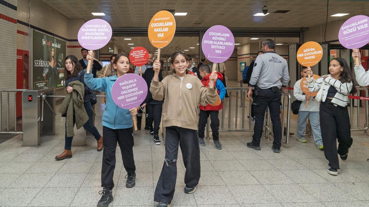 Dünya Çocuk Hakları Günü, İzmir Büyükşehir Belediyesi organizasyonuyla kentin çeşitli noktalarında düzenlenen etkinliklerle kutlanıyor. Kültür-sanat etkinlikleri, atölyeler ve farkındalık çalışmalarının yer aldığı programın en dikkat çekici bölümü ise İzmir Çocuk Meclisi üyelerinin oluşturduğu Çocuk Hakları Rotası oldu. Çocukların kent yaşamında hak farkındalığını güçlendirmek amacıyla oluşturulan rotada metro, tramvay ve vapura binen çocuklar, ellerindeki “Her çocuk eşittir”, “Oyun oynamak hakkımız”, “Eğitim her çocuğun hakkı”, “Çocukları şiddet, ihmal ve istismardan koruyun” yazılı dövizlerle taleplerini ve haklarını dile getirdi.