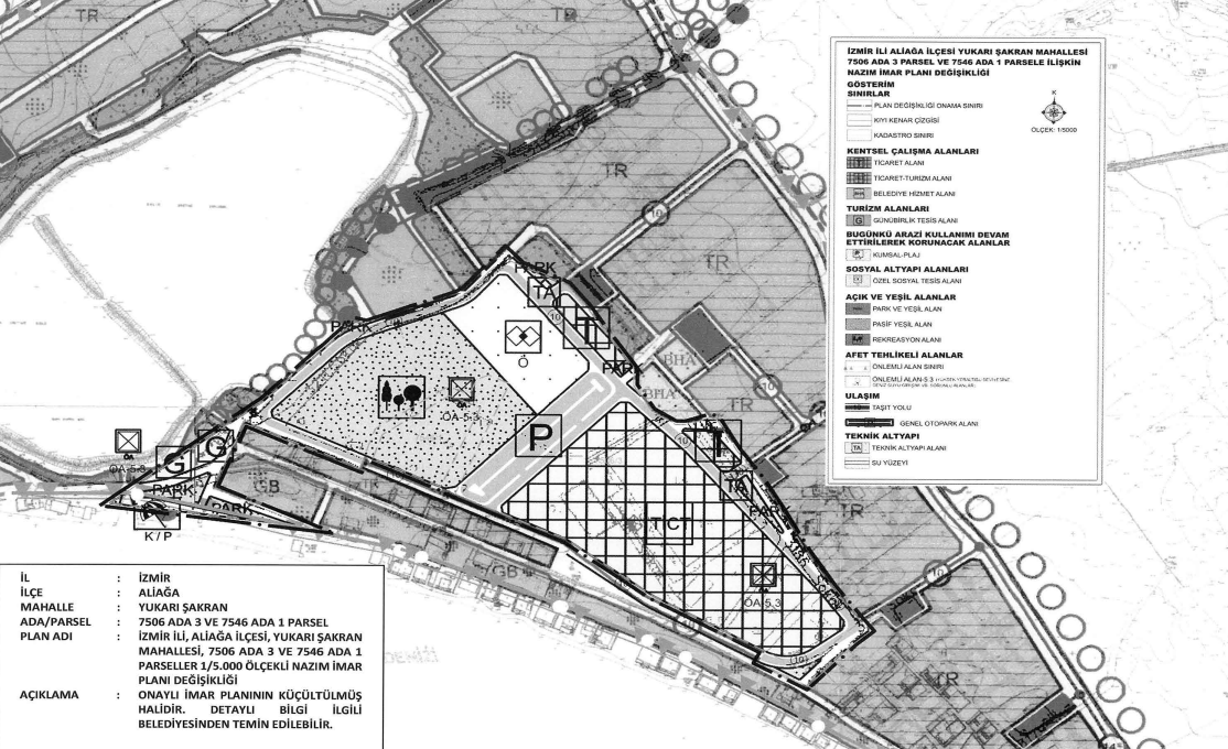Mülkiyeti Maliye Hazinesi adına kayıtlı olup özelleştirme kapsam ve programında bulunan İzmir ili, Aliağa ilçesi, Yukarı Şakran Mahallesi, 7506 ada 3 parsel ve 7546 ada 1 parseldeki taşınmazlara ilişkin "Ticaret Alanı (Blok Nizam 2 Kat), Ticaret-Turizm Alanı (E: 0.60, Yençok: 9.50 m.), Belediye Hizmet Alanı, Günübirlik Tesis Alanı (E: 0.20, Yençok: 4.50 m.), Özel Sosyal Tesis Alanı (E: 0.60, Yençok: 7.50 m.), Kumsal-Plaj, Park, Pasif Yeşil Alan, Rekreasyon Alanı (E: 0.05, Yençok: 2 Kat), Genel Otopark Alanı, Trafo Alanı, Su Yüzeyi ve Yol" kullanım kararları getirilmesine yönelik olarak Özelleştirme İdaresi Başkanlığınca hazırlanan ekli 1/25.000 ölçekli Nazım İmar Planı Değişikliği, 1/5.000 ölçekli Nazım İmar Planı Değişikliği ve 1/1.000 ölçekli Uygulama İmar Planı Değişikliğinin onaylanmasına, işbu Karar gereklerinin yerine getirilmesi hususunda Özelleştirme İdaresi Başkanlığının yetkili kılınmasına, 3194 sayılı İmar Kanununun ek 3 üncü maddesi ve 4046 sayılı Özelleştirme Uygulamaları Hakkında Kanunun 3 üncü maddesi ile 703 sayılı Kanun Hükmünde Kararnamenin geçici 8 inci maddesi gereğince karar verilmiştir.