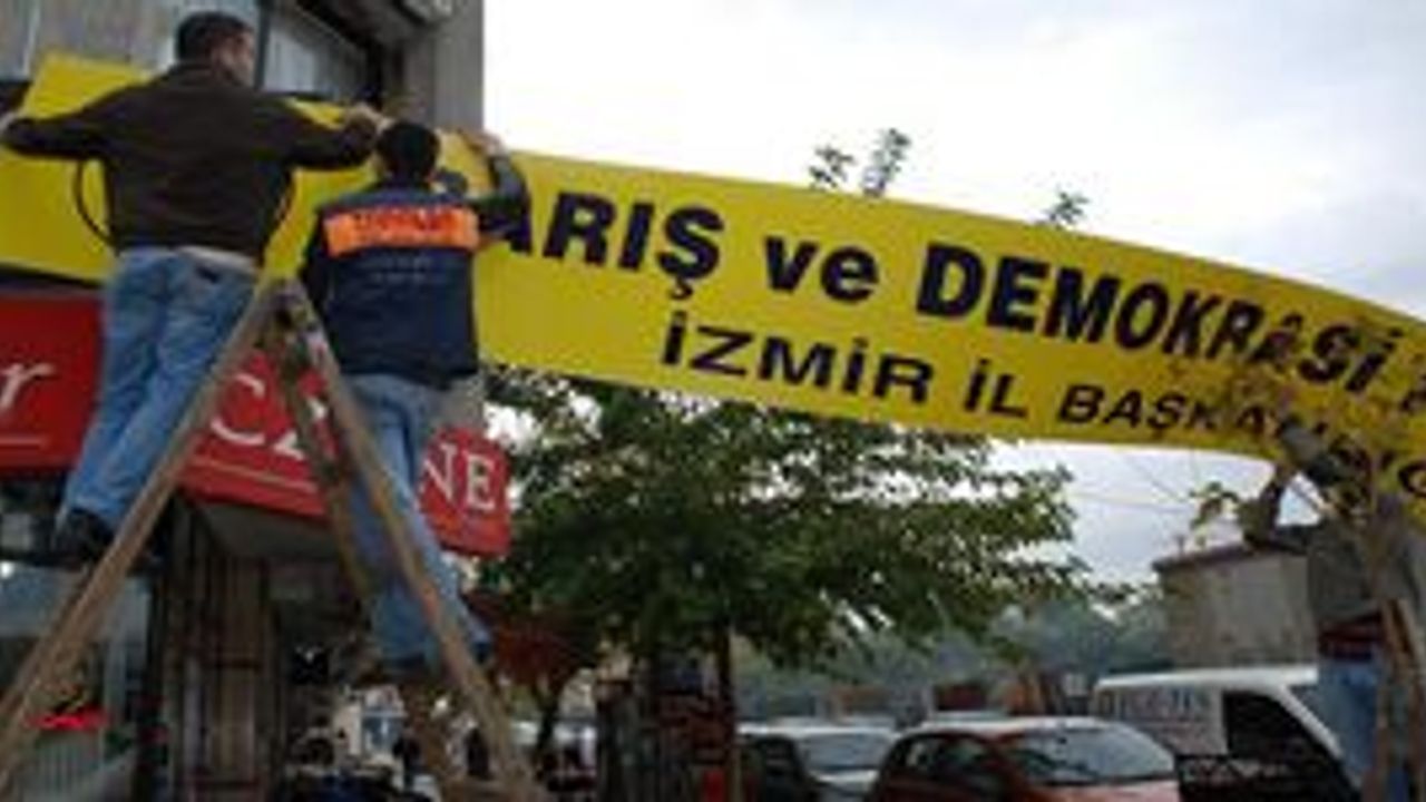 Yusuf Kırbiç/Egedesonsöz - DTP 'nin kapatılma kararının alınmasının ardından BDP hareketi Tüm Türkiye'de olduğu gibi İzmirde de hız kazandı. Ülkenin her yerinde DTP teşkilatlarındaki tabelalar yerini BDP tabelasına bırakırken bu çalışma bugün öğle saatlerinde İzmirde de gerçekleşti.