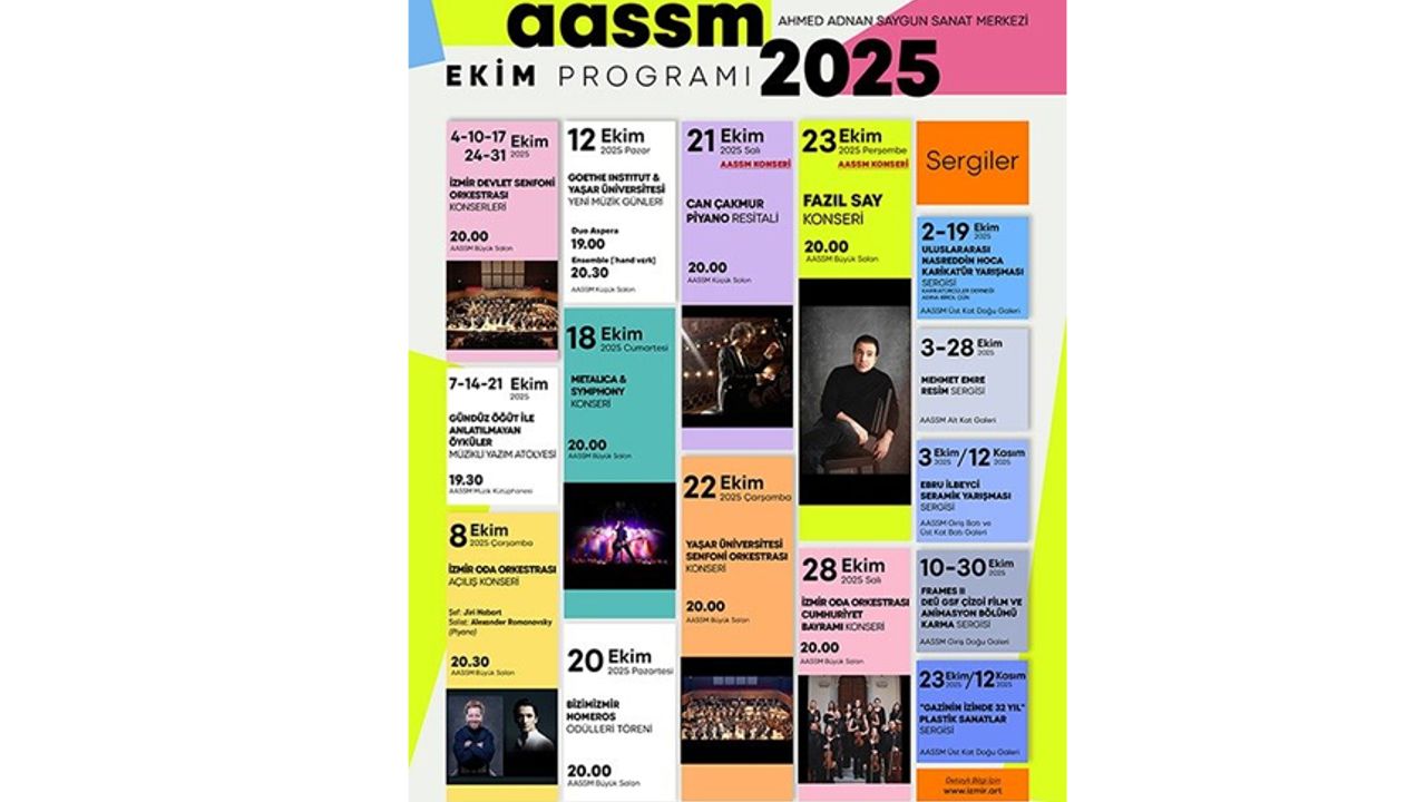 İzmirli sanatseverler, sonbaharda birbirinden farklı kültür sanat etkinlikleri ile buluşmaya devam ediyor. Ahmed Adnan Saygun Sanat Merkezi ev sahipliğinde düzenlenecek çok sayıda konser, atölye ve sergi, sanatseverlerin beğenisine sunulacak. İzmir Oda Orkestrası ekim ayında hem sezon açılış konserine hem de 28 Ekim’de Cumhuriyet Bayramı konserine imza atacak. Dünyanın en iyi Metallica tribute gruplarından biri olarak bilinen Metallica & Symphony, efsanevi grup Metallica'nın şarkılarının seslendirileceği eşsiz bir müzik ziyareti sunacak.