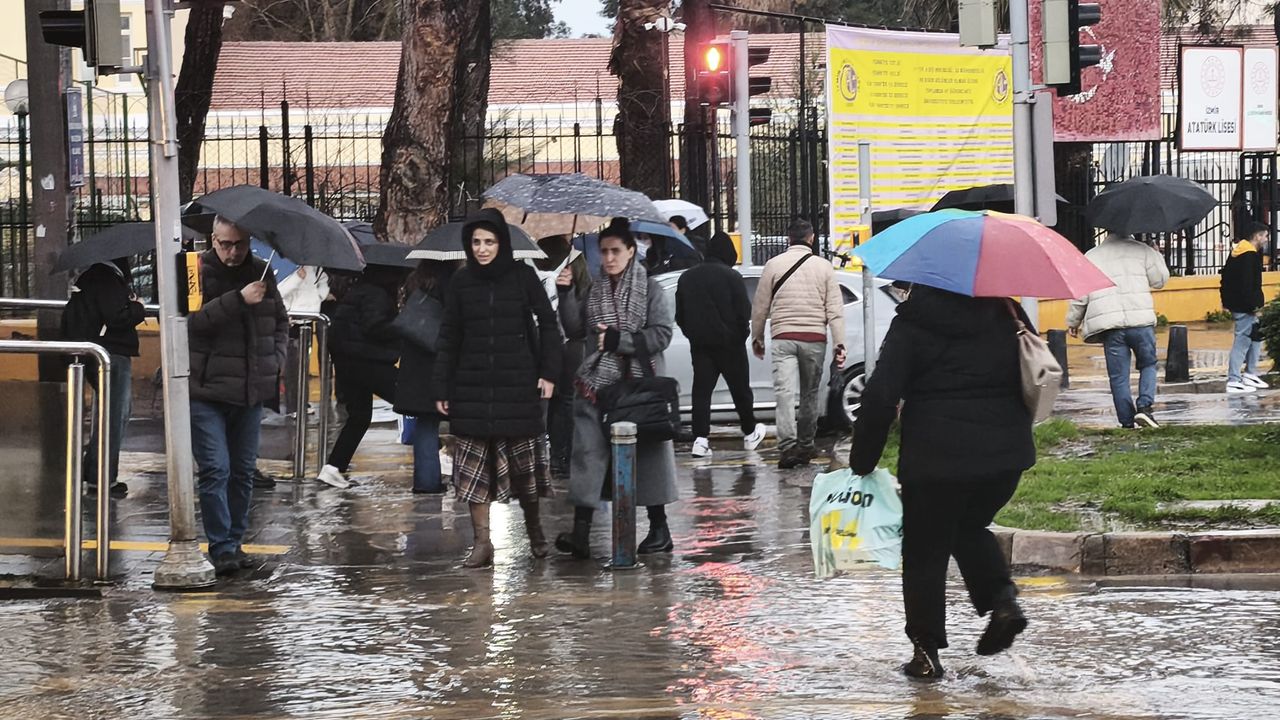 İzmir'de etkili olan sağanak yaşamı olumsuz etkiledi.