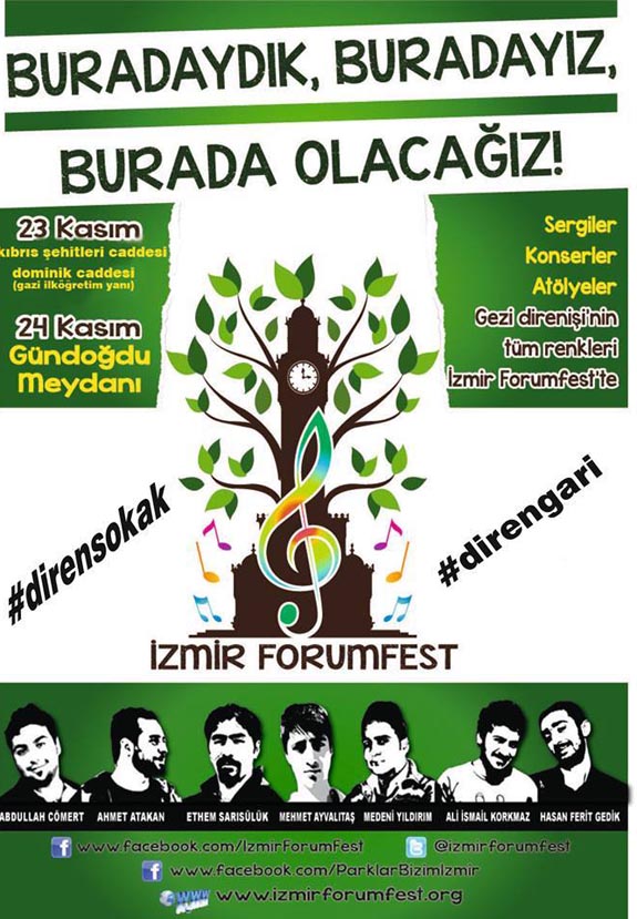 İzmir Forum Fest'te 23-24 Kasım günlerinde kentin 3 farklı noktasında müzik dinletileri, tiyatro gösterileri, atölye buluşmaları yapılacak, finalde Gündoğdu Meydanı'nda konserler düzenlenecek. Halk forumları yitirilen canları sanatla anacak.
