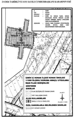 EGEDESONSÖZ- 3 Nisan 2026 tarihli Resmi Gazete’de yayımlanan Cumhurbaşkanı kararlarıyla, İzmir’deki iki önemli iskele alanına ilişkin imar planı değişiklikleri onaylandı.