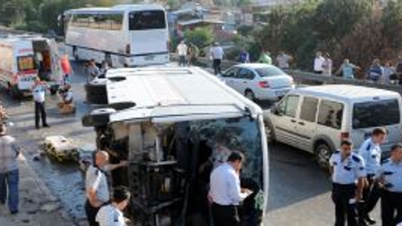 Çarpmanın etkisiyle kontrolden çıkan Çobanoğulları'nın servis aracı, refüjü aşıp 2 metre yükseklikten alt yola uçtu. Karşı yönden gelen Ali Demir yönetimindeki hafif ticari araçla çarpışan servis minibüsü yan yattı. Camları kırılan servis aracındaki yolcular yola saçıldı. Konak yönüne ilerleyen Soner Torun yönetimindeki 35 AP 7893 plakalı otomobil de yan yatan servise çarptı. Şans eseri yoldaki yaralılara çarpmayan otomobil manevra yapıp güçlükle durabildi.