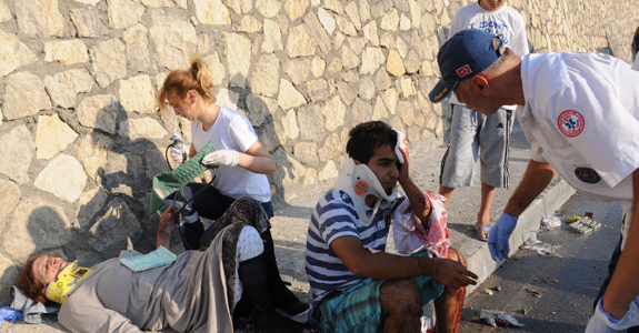 Hurdaya dönen araçları görenler kazayı polis ve sağlık ekiplerine bildirdi. Çevre güvenliğini alan polis ekipleri yolu tek şeride indirdi. İhbar üzerine gelen acil yardım ekiplerinin müdahalesinin ardından, aralarında üniversite öğrencilerinin de bulunduğu yaralı 17 kişi çeşitli hastanelere kaldırıldı. Yaralılardan emekli polis memuru Hüseyin Öztaş (56) ve Azerbaycan uyruklu öğrenci Nurlan Muhammed Hüseyinov, İzmir Eğitim ve Araştırma Hastanesi'ne; Necati Güneysu, Melek Güneysu (19) ve Seyfi Ahmet Dumlu (38), Atatürk Eğitim ve Araştırma Hastanesi'ne; Ali Demir (53), Şerif Çetiner (27), Kemal Mercan (38) ve kimliği belirsiz 1 kişi, Tepecik Eğitim ve Araştırma Hastanesi'ne; Kübra Turan (19), Hasan Turan (55), Azerbaycan uyruklu öğrenci Elcin Marimanov (19), Dokuz Eylül Üniversitesi Hastanesi'ne; Mustafa Alkan (64), Ayşe Alkan (65) ve Celalettin Coşkun (52), Ege Üniversitesi Hastanesi'ne; servis sürücüsü Avni Çobanoğulları ve Nazife Karaca (49), Alsancak Devlet Hastanesi'ne kaldırıldı. Emekli polis Öztaş ile Tepecik'e kaldırılan ismi belirsiz kişinin durumlarının ağır olduğu öğrenildi.