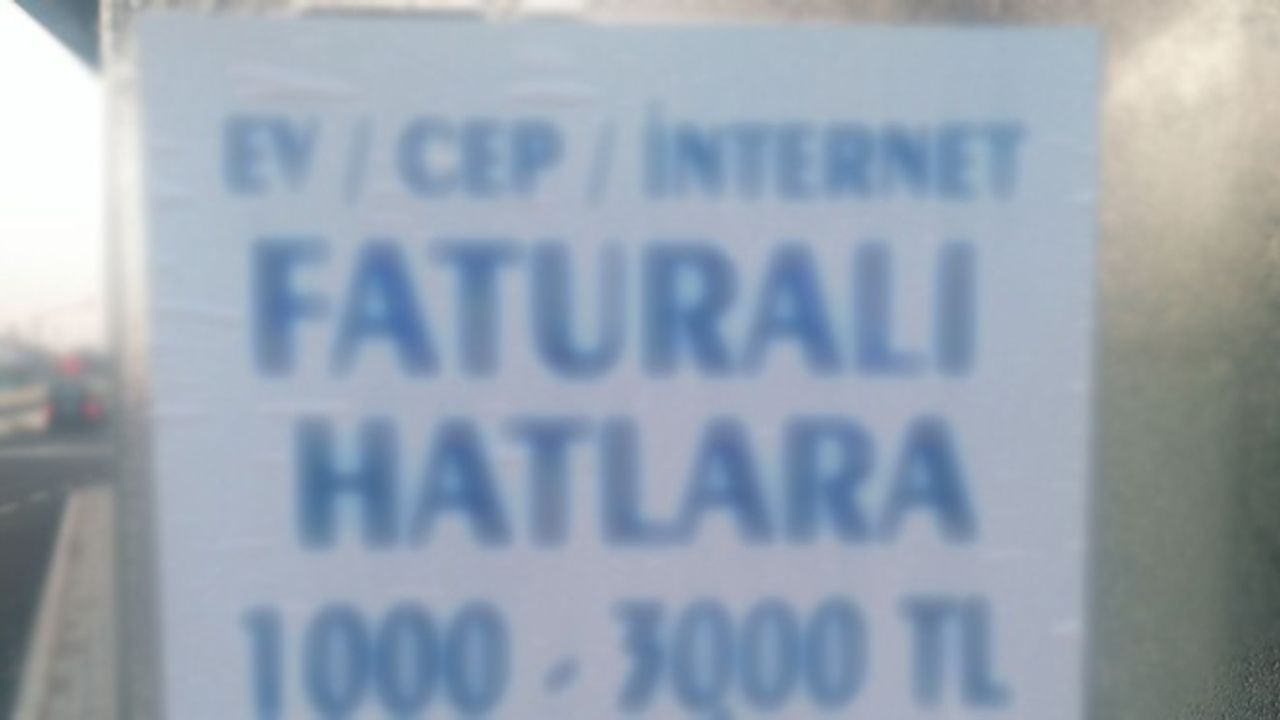 EGEDESONSÖZ- İzmir Çankaya Elektronikçiler Çarşısı'nda bazı cep telefonu toptancıları tarafından otobüs durağı, İZBAN ve metro gibi yerlerde 'Ev, cep ve İnternet faturalı hatlara 1000-3000 TL arası nakit sağlanır' şeklinde ilanlar asıldı. Vatandaşlara kullandıkları ev, cep veya internet hatlı faturalarından nakit para vaadinde bulunarak borçlanmanın yolu açılıyor.