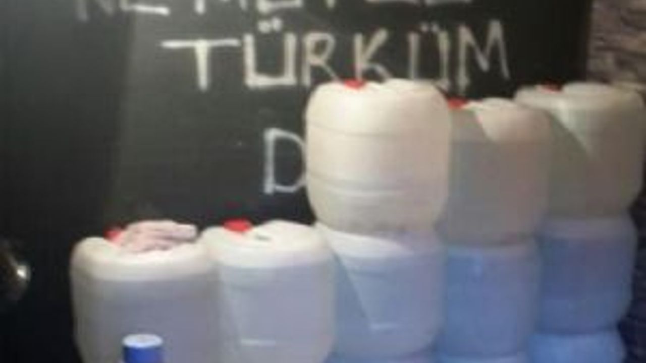 Söz konusu depoya operasyon düzenleyen polis, beyaz bidon ve pet şişeler içerisinde toplamda 670 litre sahte rakı, viski yapımında kullanılan 5 litrelik bidon içinde 2.5 litre renklendirici ve tat verici madde, 4 litrelik bidon içinde içki yapımında kullanılan 2 litre renklendirici madde ve içki imalatında ölçüm için kullanılan 2 beher ele geçirildi. Depodaki 'Ne Mutlu Türküm Diyene' yazısı ve ay yıldız sembolü dikkat çekti. Operasyon kapsamında gözaltına alınan B.B., işlemlerinin ardından savcının talimatıyla serbest bırakıldı. (dha)