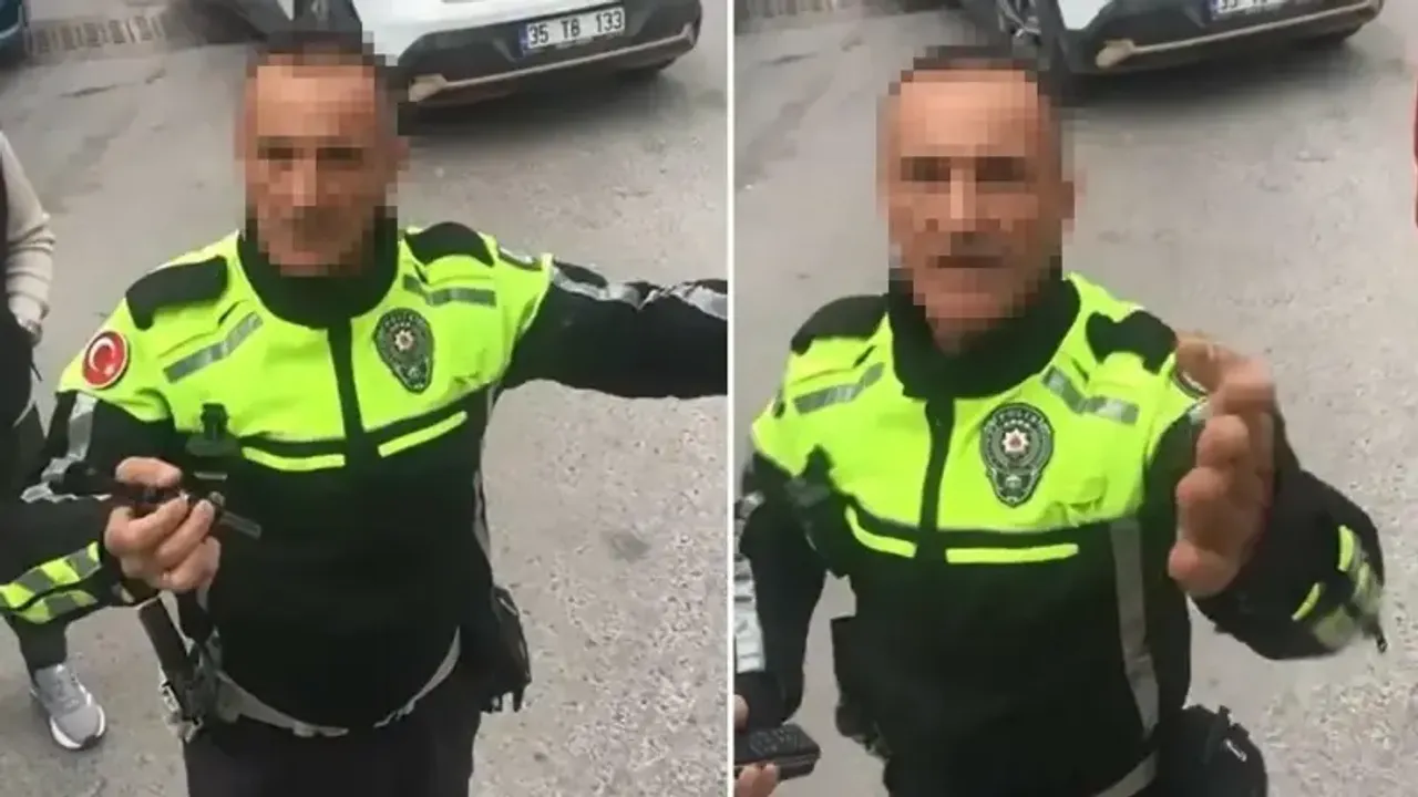 Olay, dün saat 10.30 sıralarında Cumhuriyet Bulvarı'nda meydana geldi. İzmir Emniyet Müdürlüğü Trafik Denetleme Şube Müdürlüğü ekipleri, daha önce kaçak moloz döktüğü tespit edilerek plakası tüm birimlere bildirilen ve ikazlara uymayarak kaçan 35 BAZ 439 plakalı kamyoneti denetim noktasında durdurdu. Polise ehliyet ve kimlik vermeyen F.A., kamyonetten inmeyi de reddetti. Bu sırada görevli polis memurlarını cep telefonu kamerasıyla görüntüleyen F.A., "Zorla beni aracımdan indirmeye çalışıyor. Ben burada işimi yapmaya çalışıyorum. Hala bana 'İner misin' diyor" ifadelerini kullandı. Polis memurunun ise "Ehliyetin olmadığını söylüyorsun, lütfen iner misin aşağı, kimlik vermiyorsun polise" dediği anlar görüntülere yansıdı.