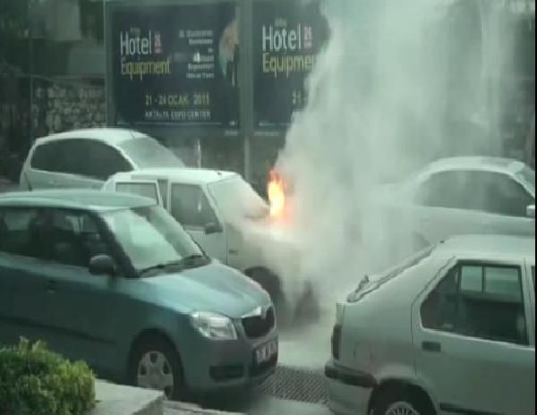 Sürücü ve yanındaki kişi otomobilden inerken, itfaiyeye haber verildi. Olay yerine gelen itfaiye ekipi, motor bölümünden yoğun duman çıkan ve kaputtaki boyaları alev alan otomobili, su sıkarak söndürdü. Yangının kısa sürede söndürülmesiyle, çevrede park halinde bulunan araçlara sıçramasının önüne geçildi. (dha)