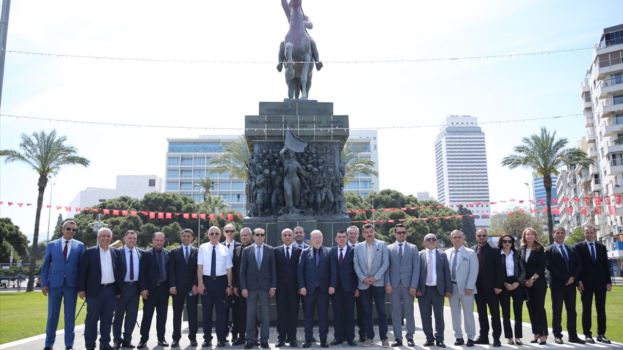 Cumhuriyet Meydanı'ndaki törende SGK İzmir Müdürü Hidayet Baydilli, Atatürk Anıtı'na çelenk sundu.