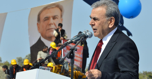 Temel atma töreninde konuşan İzmir Büyükşehir Belediye Başkanı Aziz Kocaoğlu, Atatürk'ün talimatı ile başlayan İzmir fuarcılığının temelinin 1. İktisat Kongresi ile atıldığını söyledi. Ardından sürecin Kültürpark'taki fuar alanı ile devam ettiğini anlatan Kocaoğlu, 'Göreve geldiğimizde ilk mermer fuarını yaptık. O alanın yetmediğini hep birlikte gördük. İzmir'in fuarcılığının gelişmesi için yer arama çalışmalarını başlattık. Bu gördüğünüz alan tespit edildi, kamulaştırıldı. Burada bulunan 337 bin metrekare alanda arazisi bulunan muvafakat veren 'gelin anlaşamasak da çalışmalara başlayın' diyen vatandaşlarımıza teşekkür ediyorum. Biz, daha sonra fuarcılığın sadece belediyelerin bünyesinde devam etmesinin belli sıkıntıları olduğunu gördük. Bunu halka mal ederek, İzmir ile kaderini birleştirmiş sanayici, tacire mal etmek istedik. Orada da dar boğazlara, sorunlara rastladık. Son olarak belediye kamulaştırmaların tamamını bitirdi. Temelini atıyoruz. Yüklenici firma 2014 Temmuz Ayı'nda işi bitirecek ama bir bölümünü Mart Ayı'na kadar tamamlamak istiyoruz. Biten alanda Mermer Fuarı yapacağız' dedi.