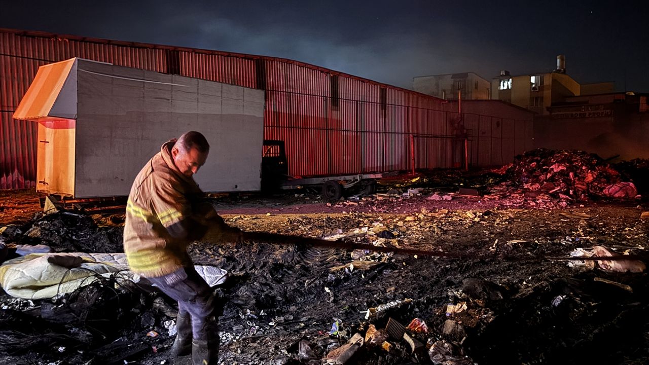 Seyhan Mahallesi 718. Sokak'taki plastik, tekstil ürünleri ve moloz birikintilerinin bulunduğu alanda henüz belirlenemeyen nedenle yangın çıktı.