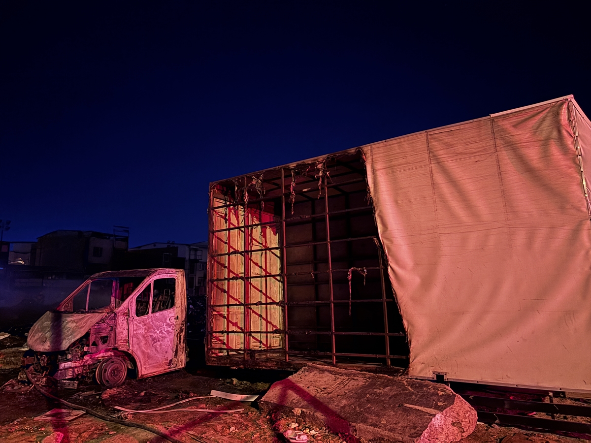 Evindeyken yangın haberini alıp olay yerine geldiğini belirten Yenilmez, kamyonetinin yanmasından duyduğu üzüntüyü dile getirdi.