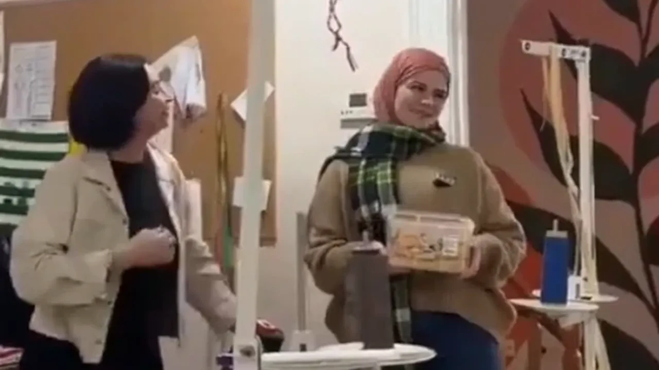 Videoda kadın, iş arkadaşlarına "Bu bizim gerçek kutlamamız. Biz sonunda 60 yıldan sonra özgür olduk. Ve artık hiçbir Suriyeli mülteci değil. Bir Suriyeli mülteci sadece Esed'dir. Biz şimdi özgürüz." ifadelerini kullanıyor.
