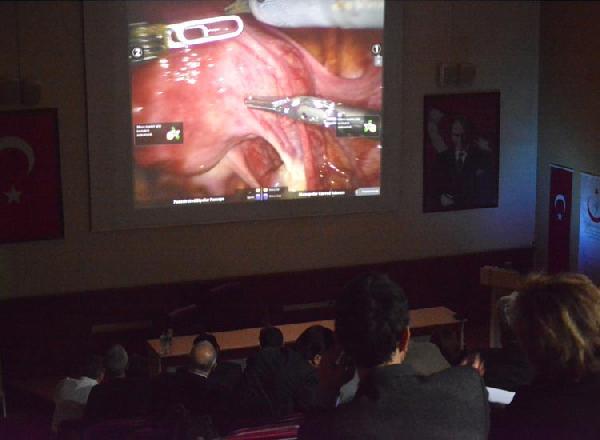 Teorik sunumlardan sonra Prof. Dr. Fatih Şendağ, Doç. Dr. Bülent Yılmaz ve Op. Dr. Alper Biler tarafından Da Vinci Robot ile histerektomi ameliyatı gerçekleştirildi. Rahim içi kalınlaşma ve aşırı kanama sebebiyle 56 yaşındaki hastanın rahmi ve yumurtalıkları Da Vinci Robot ile alındı. İzmir ve çevre illerden kursa katılan 100 doktor ameliyatı canlı izledi. Ameliyat sırasında operasyonu gerçekleştiren cerrahlara soru sorarak bilgi alma imkanı da bulan doktorlara kursun sonunda sertifika verildi. (dha)