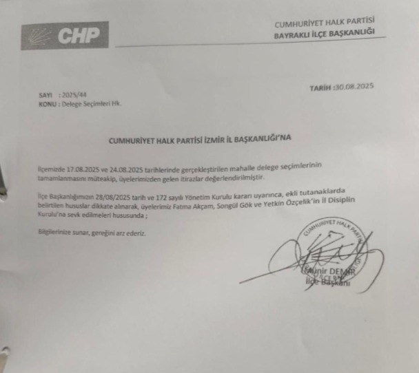 Berivan KAYA/EGEDESONSÖZ- CHP Bayraklı’da Manavkuyu Mahalle delege seçimlerinde yaşanan tartışma sonrası disiplin süreci başlatıldı.