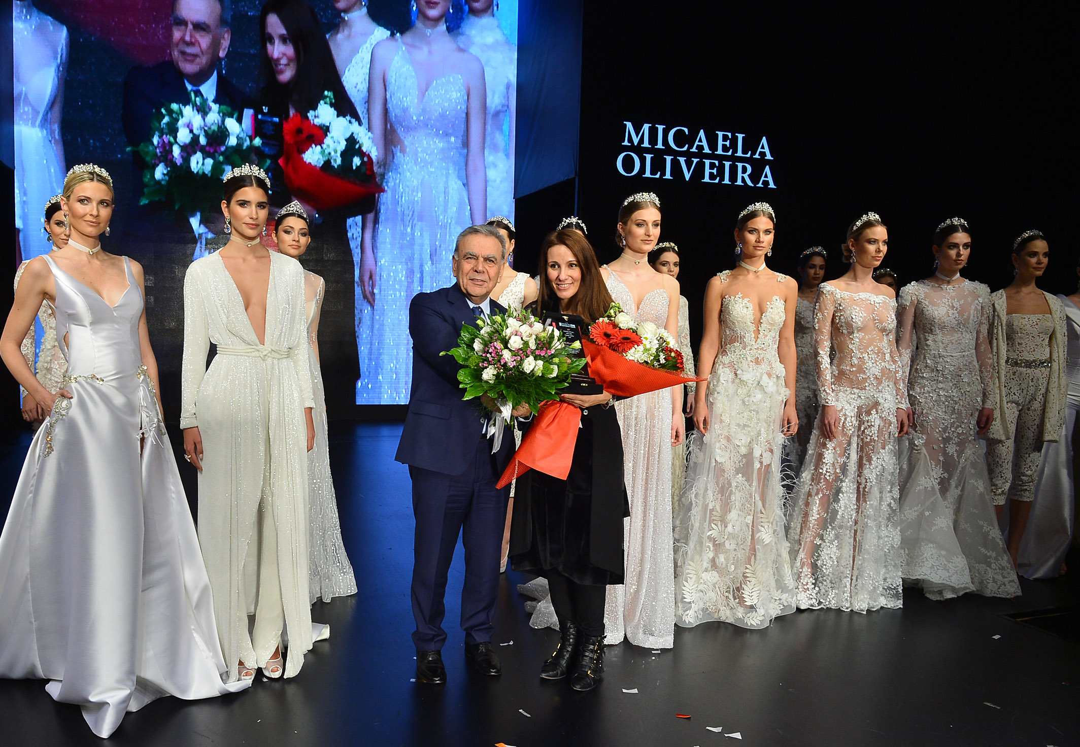 Oliveira'nın 11'inci IF Wedding Fashion İzmir'e özel olmak üzere tasarladığı yaklaşık 90 yeni gelinlik, Fuar İzmir'de adeta Portekiz rüzgarı estirdi. 'Once Upon a Time' (Bir Varmış Bir Yokmuş) koleksiyonuyla dünyanın en önemli iç çamaşırı markalarından birinin marka yüzü Portekizli model Francisca Perez ve dünyaca ünlü giyim ve ünlü bir parfüm markasının reklam yüzü İspanyol model Montse Suarez ile 2016 Bosna Hersek güzeli Halida Krajisnik'in de aralarında bulunduğu mankenlerin podyuma çıktığı gecede, Micaela Oliveria i mzasını taşıyan tasarımlar büyük ilgi gördü. Micaela Oliveria, gecenin sonunda ise Büyükşehir Belediye Başkanı Aziz Kocaoğlu'nun elinden teşekkür plaketini aldı. 11. IF Wedding Fashion İzmir - Gelinlik, Damatlık ve Abiye Giyim Fuarı'nın, Avrupa'nın en iyi fuarlarından biri olduğunu önemle belirten Oliveira, 'Bu fuar sayesinde gelinlikler tüm dünyada yankı buluyor. Burada çok iyi bir referans sağlanıyor. Fuar ve düzenlenen defileler sayesinde birçok ülkeden katılımcı gelecek ve sektör canlanacak' diye konuştu.