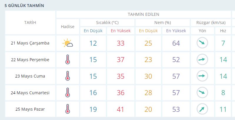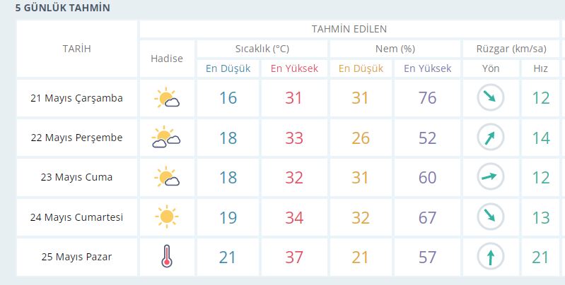 Pazar günü hava sıcaklığının merkez ilçelerde 37 dereceye, dış ilçelerde 41 dereceye kadar çıkması bekleniyor.