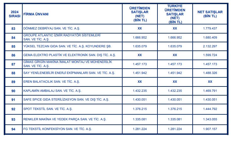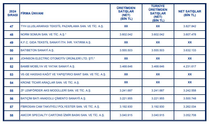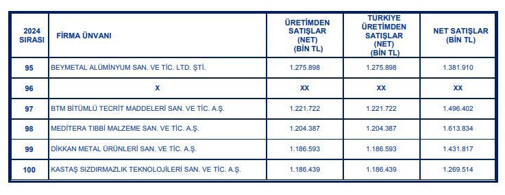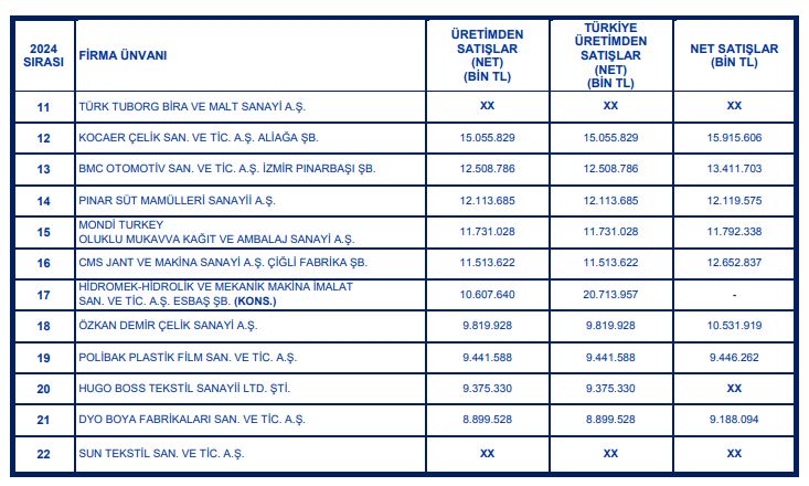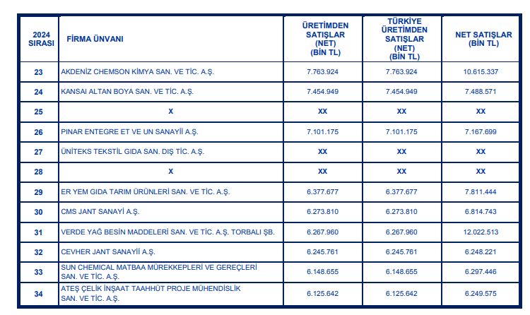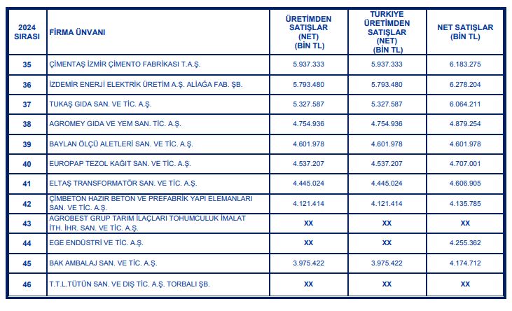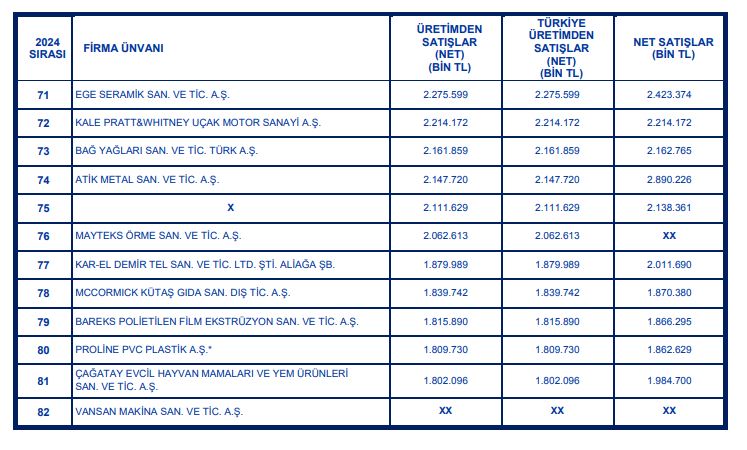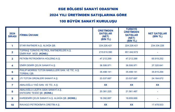 2024 yılında zirvede yer alan Star Rafineri A.Ş. zirvedeki yerini bırakmadı. STAR RAFİNERİ'yi TÜPRAŞ, PETKİM, İZMİR DEMİR ÇELİK, PHILIP MORRİS, JTI TÜTÜN ÜRÜNLERİ, ABALIOĞLU YAĞ SANAYİ firmaları takip etti.