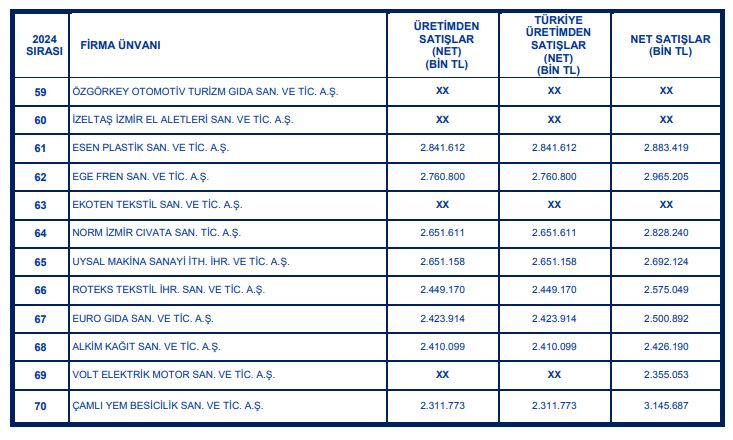 Büşra ÇETİNKAYA / EGEDESONSÖZ - Ege Bölge Sanayi Odası (EBSO), 2024 yılı üretimden satışlara göre 100 büyük sanayi kuruluşunu açıklamak üzere basın toplantısı düzenledi.