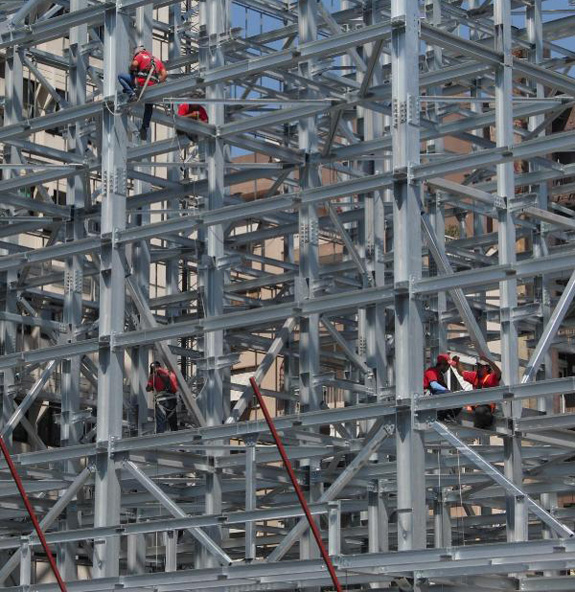 Çelik iskeletteki kolonlar yatay ve çapraz kiriş bağlantılarının, işçiler tarafından tek tek montajının yapıldığı inşaatta, bu çalışma İzmirliler tarafından da merakla izleniyor. Çelik kolonlar üzerinde onlarca metre yükseklikteki işçiler sıcak havada çalışmalarını, bellerine bağlı güvenlik kemerleriyle yapıyor. İşçiler Ağustos ayında çelik imalatın bitmesinin ardından, cam ve giydirme cephe kaplaması montajına başlayacak. Tam otomatik otopark, 2014 Şubat ayında hizmete girecek.