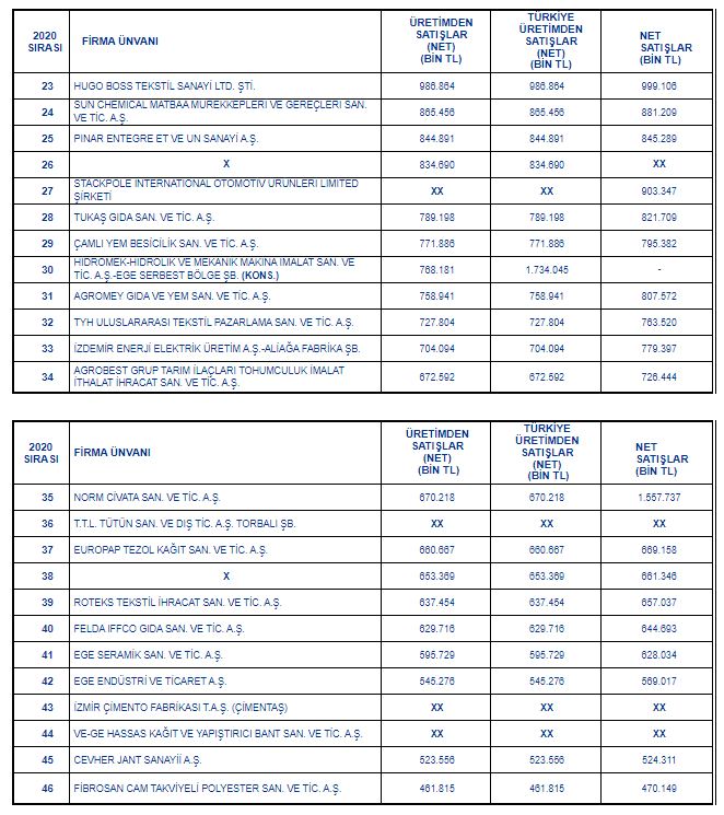Menduha Ceylan/EGEDESONSÖZ- Ege Bölgesi Sanayi Odası (EBSO), bu yıl 39'uncu kez açıkladığı 'Üretimden Satışlara' göre 100 Büyük Sanayi Kuruluşu 2020 yılı listesini düzenlenen online basın toplantısıyla duyurdu.