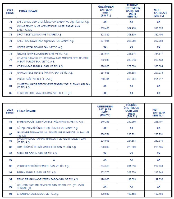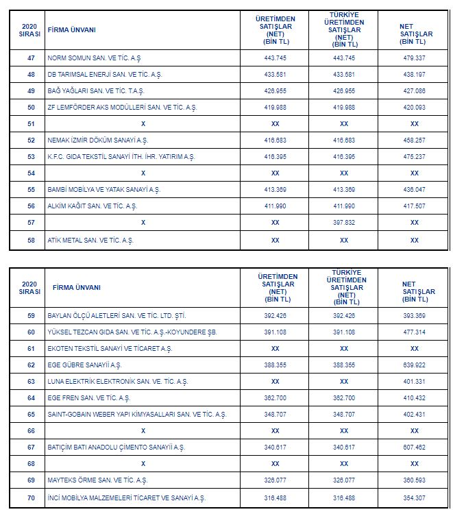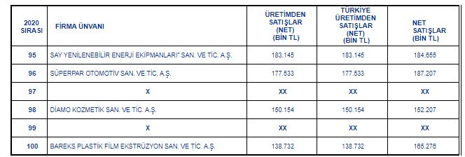 İŞTE İLK 100'E GİREN FİRMALAR: