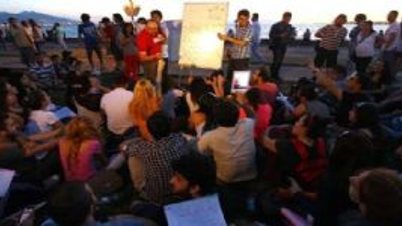 İZMİR - Ege Üniversitesi İktisadi ve İdari Bilimler Fakültesi Öğretim Üyesi Prof. Dr. Türker Susmuş, Taksim Gezi Parkı'ndaki olayları protesto etmek için İzmir Gündoğdu Meydanı'nda düzenlenen eylemde ögrencilerine ders anlattı.