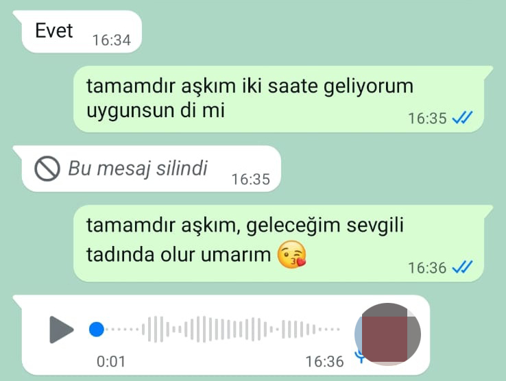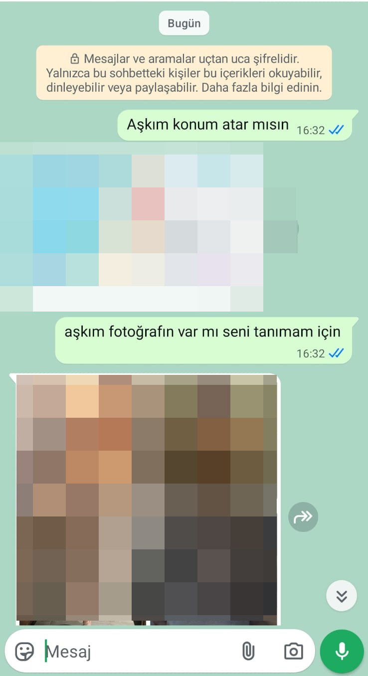 Bu telefon konuşmasının ardından Whatsapp’ta mesaj atınca direkt olarak konumu atıp müstehcen fotoğraflar yolladılar.