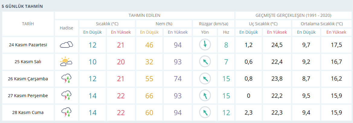 Hafta boyunca sıcaklıklar gün içerisinde ortalama 21°C civarlarında olacakken gece sıcaklıklarının ise 10°C’ye kadar düşmesi bekleniyor. Gece ve sabaha karşı vakitlerde hava sıcaklığının ‘üşüme’ etkisinde olacağı belirtildi.