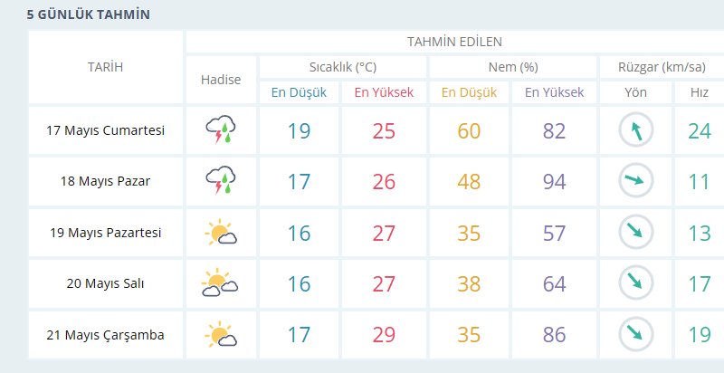 Cumartesi günü kuvvetli rüzgarlar beklenirken Pazar günü kentte etkili olan rüzgarın etkisini yitireceği tahmin ediliyor. Nem oranı ise yüzde 94 derecelere kadar çıkacak.