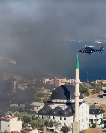 İhbar üzerine bölgeye İzmir Orman Bölge Müdürlüğüne ait 3 uçak, 4 helikopter, 22 arazöz, 6 su ikmal aracı ile 3 dozer sevk edildi.
