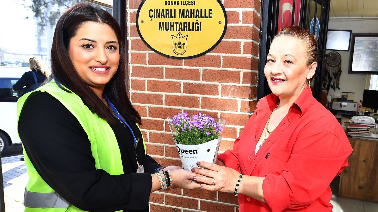 İzmirli kadın muhtarlar, 8 Mart Dünya Kadınlar Günü’nde unutulmadı. Demokrasinin yapı taşları bu özel günü İzmir Büyükşehir Belediyesi’nin sürprizi ile karşıladı. Muhtarlık İşleri Dairesi Başkanlığı tarafından 30 ilçede düzenlenen ziyarette, mahallelerine hizmet eden 202 kadın muhtarın kapısı çalındı. Mor çiçekleri özenle masalarına yerleştiren kadın muhtarlar, Büyükşehir personeli ile mahallelerindeki mevcut durumları ve kendi hikayelerini de paylaştı.