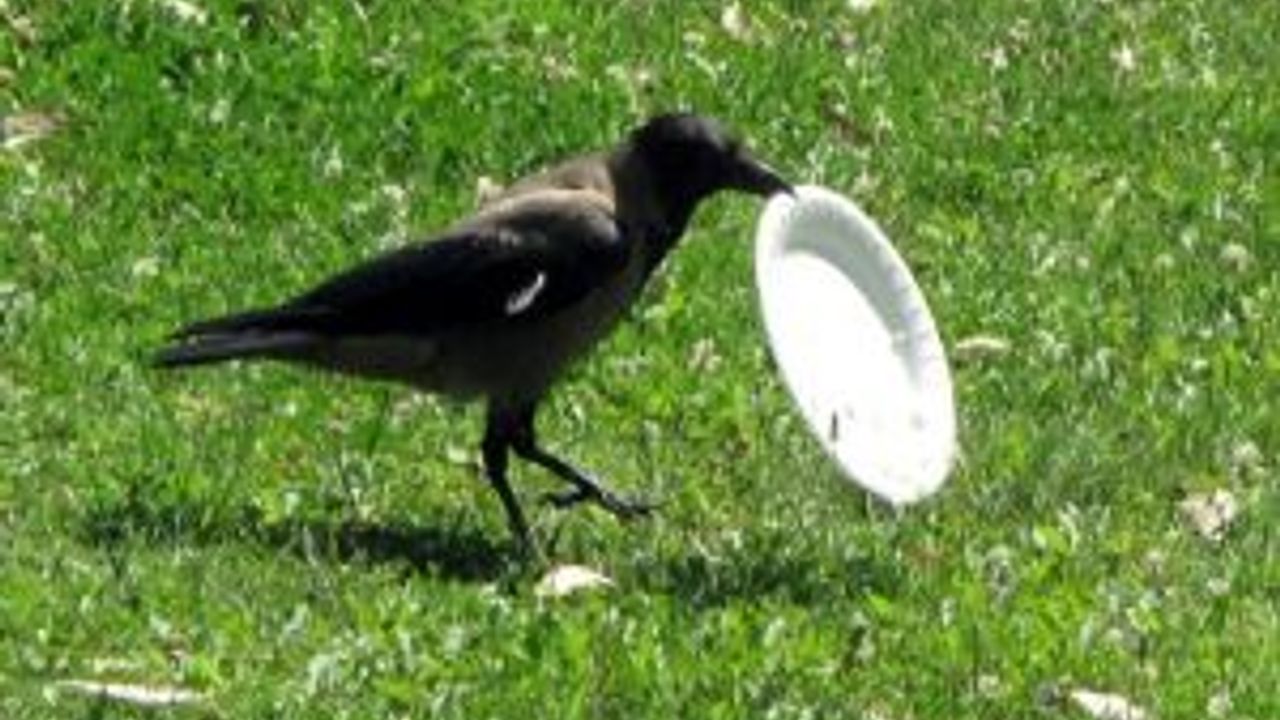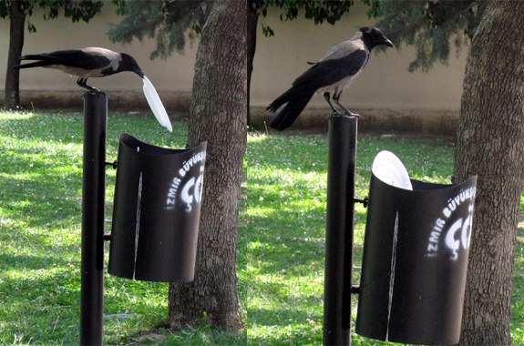 Gagasıyla kenarından tabağı kavrayan karga, yakındaki çöp kutusuna attı. Kuşun davranışını görenler şaşkınlıklarını gizleyemezken, 'Bu kargadan kılavuz olur' dedi. (dha)