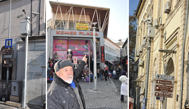 Konak'ta bulunan ve İzmir denilince akla ilk gelen mekanlar arasında yerini alan tarihi Kemeraltı Çarsı artık MOBESE sistemiyle izlenecek. Alışverişe gelenlerin ve esnafın korkulu rüyası olan yankesicilerin önüne geçilmesinin yanı sıra, kurulan kamera sistemiyle çarşı 24 saat izlenerek güvenlik sağlanacak. 28 ayrı noktada kurulacak 89 sabit, 3 hareketli olmak üzere toplam 92 kamera ile çarşı İzmir İl Emniyet Müdürlüğü MOBESE merkezinden izlenecek. Asayişin sağlanması, güvenlik tehditlerinin bertaraf edilmesi, denetim görevinin daha etkin gerçekleştirilmesi konusunda etkili olacak sistemin ilk kameraları kurulmaya başlandı.