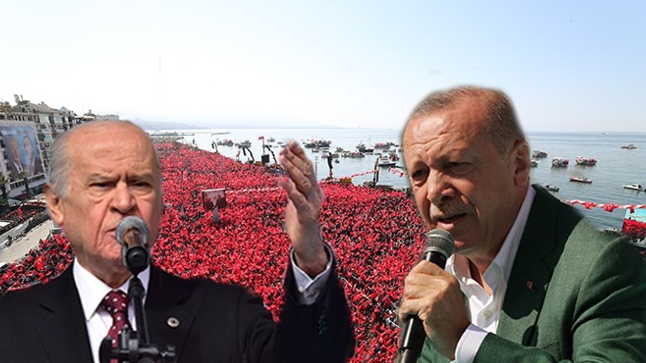 Erdoğan, 'Bugün son 1 yılda 4'üncü defadır İzmirli kardeşlerimle hasret gideriyorum. Yine de İzmir'e doyamadım. İnşallah seçimden sonra zaferi sizlerle kutlamak için tekrar geleceğiz. Buna hazır mıyız? Bugün Cumhur İttifakı'nda birlikte olduğumuz MHP Genel Başkanı Sayın Devlet Bahçeli ile huzurlarınızda olduk. Dikkat edin, bizimki cumhur ittifakıdır. Bahçeli ile ilk ortak mitingimizi buraya çok önem verdiğimiz için İzmir'de yapıyoruz. Cumhur İttifakı'nın kökleri derinlere dayanıyor. Biz Cumhur İttifakı'nı masa başında değil 15 Temmuz gecesi darbecilere karşı birlikte mücadele ederken meydanlarda, sokaklarda kurduk. Seçim ittifakları bu birlikteliğin tabi sonucudur. Bizim bu birlikteliğimiz pazara kadar değil mezara kadar sürer' dedi.