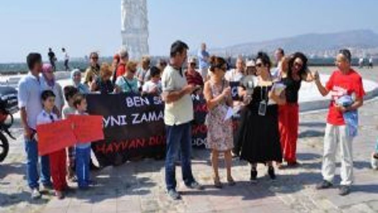 İZMİR - Bugün saat 15.00'te Gündoğdu Meydanı'nda toplanan bir grup hayvansever, Fenerbahçeli milli futbolcu Volkan Demirel'in Galatasaray ile Manisa'da oynadıkları Süper Kupa finali sonrasında rakip takım oyuncusu Felipe Melo için söylediği, 'Belediye gereksiz sokak köpeklerini zehirlesin. Yoksa olmayacak, bana kalacak bu iş' sözleri ve İstanbul'da bir sokak köpeğine tecavüz edilmesinin güvenlik kamerasınca görüntülenmesiyle ilgili basın açıklaması yaptı. Hayvanseverler adına konuşan Sibel Altun ilk olarak Fenerbahçe'nin kalecisi Volkan Demirel'in, yaptığı açıklamaya değindi. Altun, 'Maç sonrası Fenerbahçeli Volkan Demirel, rakip futbolcuyu aşağılamak adına, spor ahlakı ve toplumsal vicdanla bağdaşmayacak bir üslup kullanmıştır. Gerekçesi ne olursa olsun, bir sporcunun acımasızlık içeren sözleri asla kabul edilemez. Biz, Volkan Demirel ve Fenerbahçe Spor Kulübü'nden, bu masum canların yanlarında olup onlar için toplumun her kesiminin anlayabileceği şekilde etkinliklerle, onların da en az bizim kadar yaşam hakkına sahip olduklarını anlatmalarını istiyoruz' dedi.