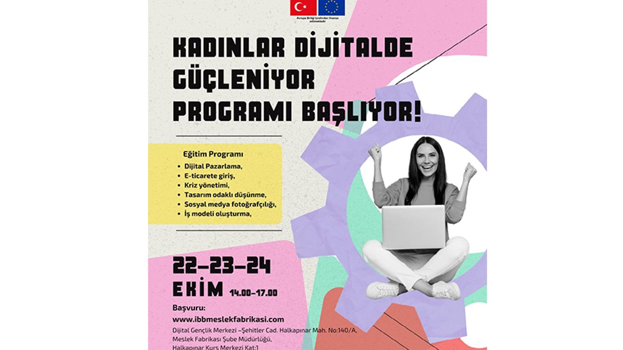 İzmirli genç kadınlar, İzmir Büyükşehir Belediyesi ile dijital dünyanın kapılarını aralayacak. Meslek Fabrikası Şube Müdürlüğü Dijital Gençlik Merkezi'nde düzenlenecek "Kadınlar Dijitalde Güçleniyor Programı", Avrupa Birliği finansmanı ile Birleşmiş Milletler Kalkınma Programı (UNDP) tarafından Türkiye Belediyeler Birliği (TBB) ile iş birliği içerisinde yürütülen Bugünün Gençleri Geleceğin Meslekleri Projesi kapsamında yapılıyor. 16-35 yaş arası genç kadınlara özel bu 3 günlük ilham dolu yolculuğa katılanlar, fikirlerini hayata geçirmeyi, dijital dünyada fark yaratmayı ve yaratıcılığını güçlendirmeyi öğrenecek. E-ticaretten dijital pazarlamaya, tasarım odaklı düşünmeden iş modeli oluşturmaya kadar dopdolu bir programa başvuru yapmak isteyenler https://www.ibbmeslekfabrikasi.com/tr/Kayitol/57 adresine girerek başvuruda bulunabiliyor.