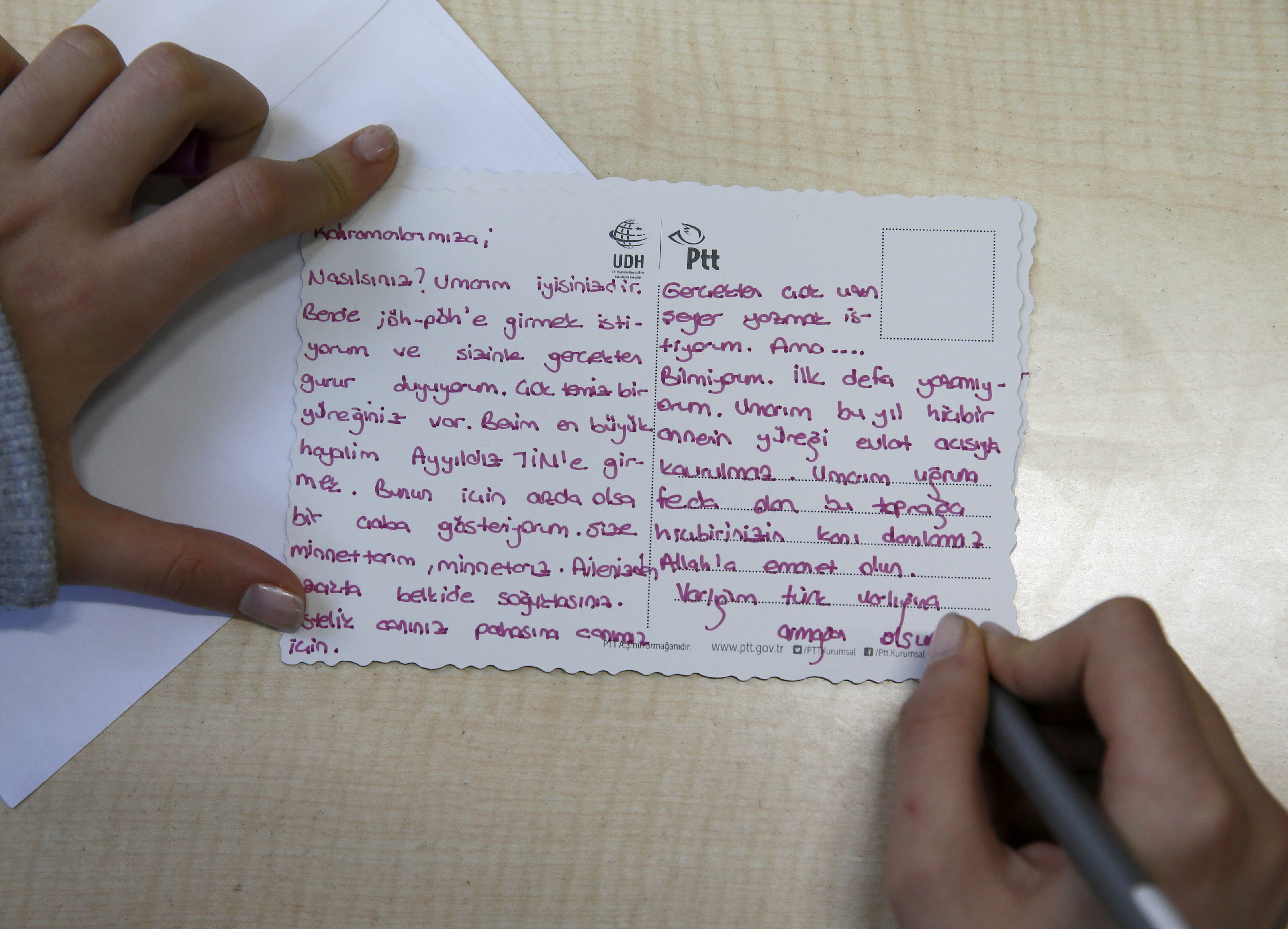 Yeni yıla zorlu şartlarda sürdürdükleri vatani görevlerinin başında girecek askerlere moral vermeyi amaçlayan yaklaşık 500 genç, duygularını aktardıkları kartpostalları Hakkari'deki Mehmetçiklere gönderdi.
