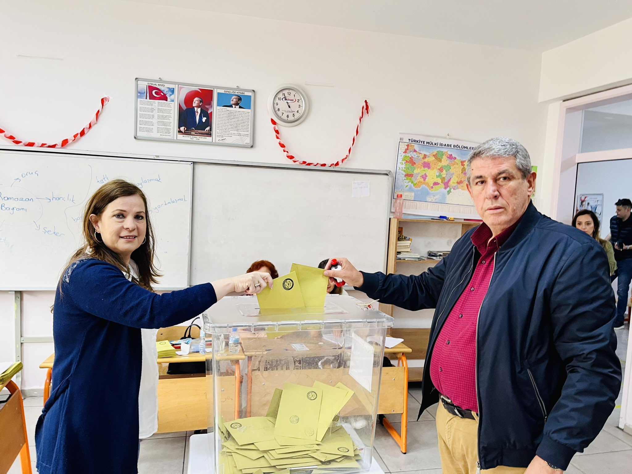 Torbalı Belediye Başkanı Mithat Tekin: Sevgili eşim Fatma Tekin, Kadın Kolları Başkanımız Ülkü Ece Bozbay ve İlçe Başkanımız Övünç Demir ile birlikte ülkemizin geleceği için oy kullandık. Tüm kıymetli hemşehrilerimizi oyunu kullanmaya ve yarının aydınlık Türkiye'si için karar vermeye davet ediyorum
