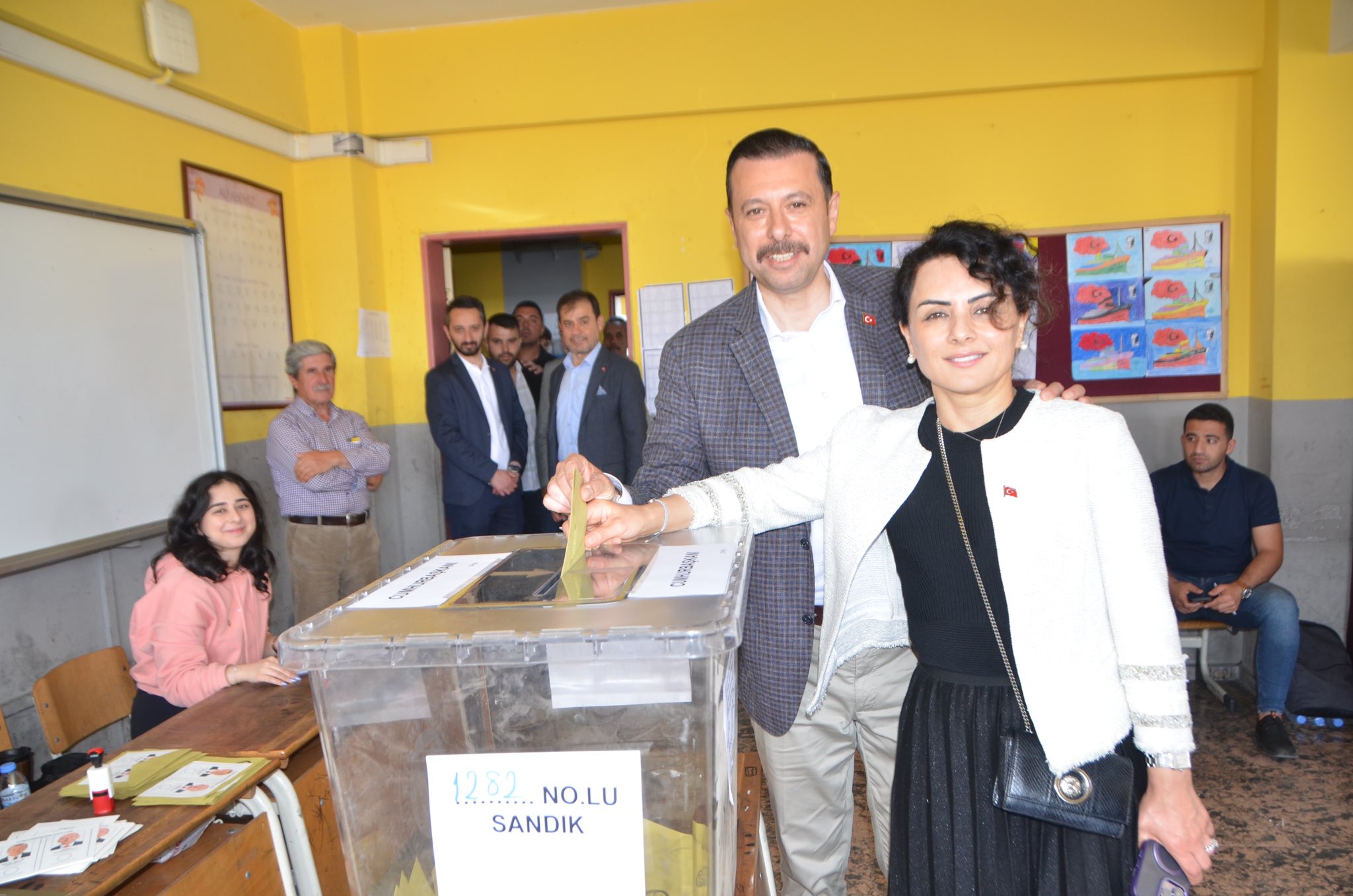 Konak Belediye Başkanı Abdül Batur: Sevgili eşim Ferah Batur'la Türkiye'ye değişim gelmesi dileğiyle oyumuzu kullandık. Konak'ta 14 Mayıs'ta 33 bin 603 seçmenimiz sandığa gitmedi. Bu seçim bu sayının '0' olması sizlerin elinde. Vatanını seven sandığa gelip, oyunu versin. Demokrasiye sahip çıkmak bizim görevimiz.