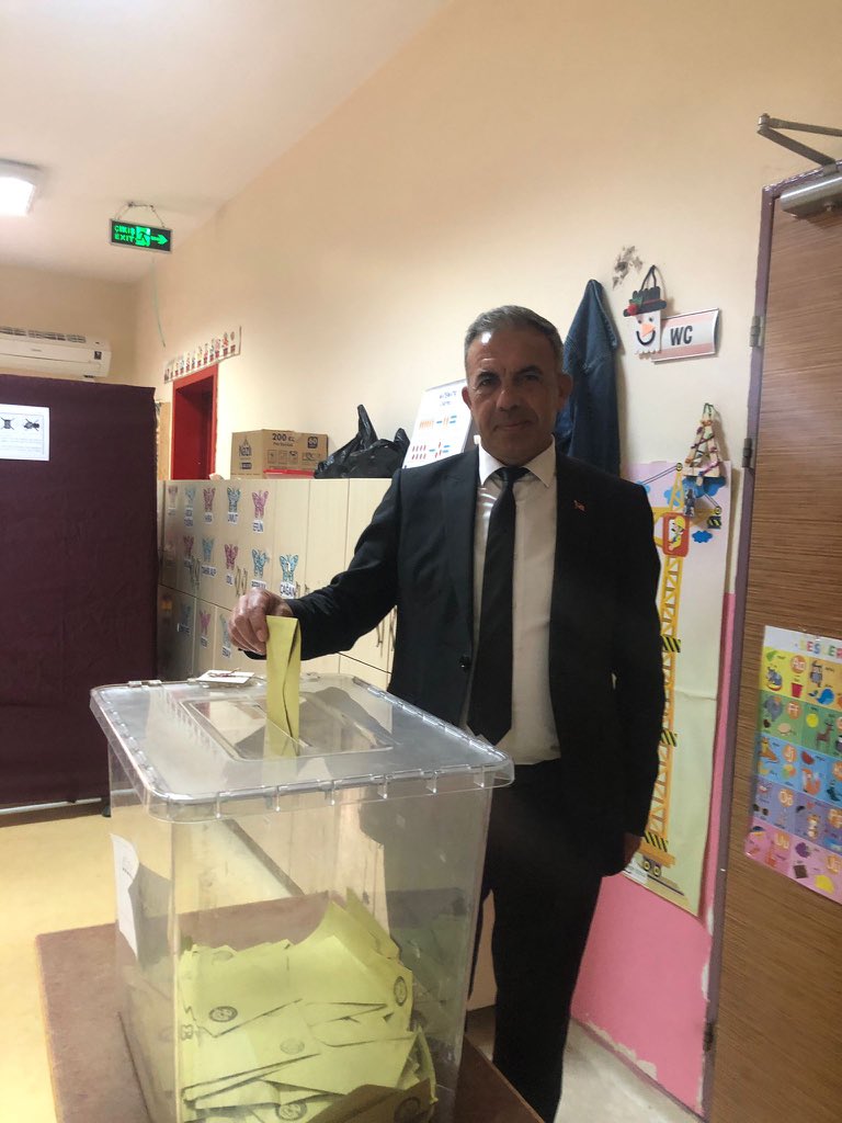 Menderes Belediye Başkan Vekili Erkan Özkan: Vatandaşlık görevimizi yaparak oyumuzu kullandık. Memleketimize, milletimize hayırlı olsun. Haydi Türkiye sandığa!