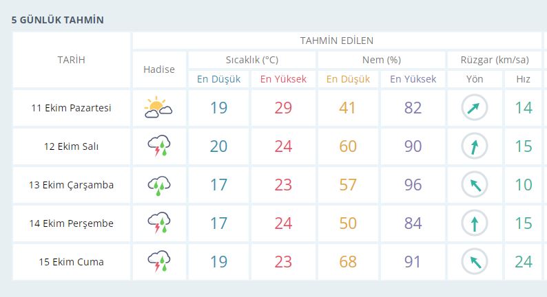 İŞTE 5 GÜNLÜK HAVA RAPORU