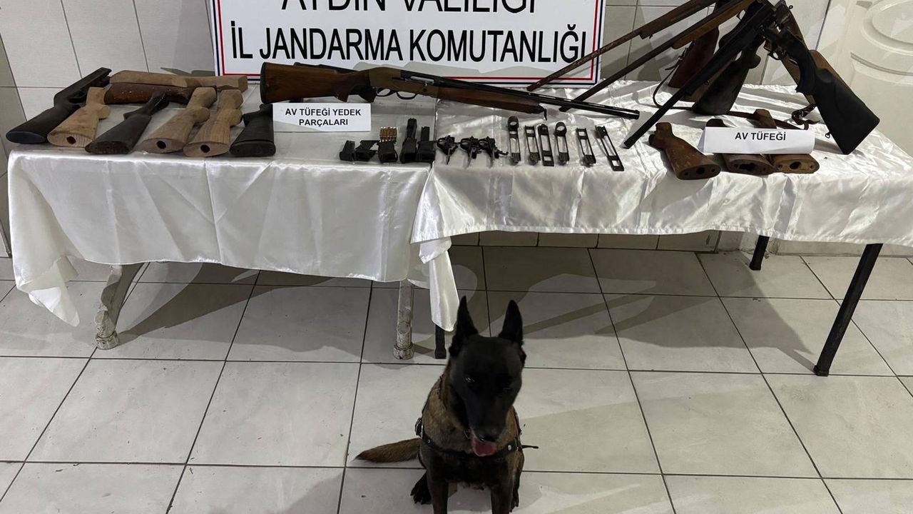 İl ve Bozdoğan ilçe Jandarma Komutanlığı ekipleri, istihbarat çalışmasıyla Madran Mahallesi'nde yaşayan kişinin evinde ruhsatsız silah tamiri ve imalatı yapıp, satmak için müşteri arayışında olduğunu tespit etti. KEP, KAFES, JABS ve PARS sistemleriyle yapılan araştırmaların ardından, ekipler, dün akşam saatlerinde Asayiş Şube Müdürlüğü'ne bağlı bomba arama köpekleri 'Obruk' ve 'Tali' eşliğinde, şüphelinin evi ve bağ evine operasyon düzenlendi. Evlerde ruhsatsız biri tam otomatik 4 av tüfeği, 13 tüfek kabzası, 3 tüfek gövdesi, 6 tüfek mekanizması, 4 tabanca kabzası, 3 tetik tertibatı, 1 tabanca üst kapağı, 3 tabanca şarjörü ve 31 fişek ele geçirildi, 1 şüpheli gözaltına alındı. Hakkında adli işlem başlatılan şüphelinin jandarmadaki işlemlerinin sürdüğü bildirildi. (DHA)