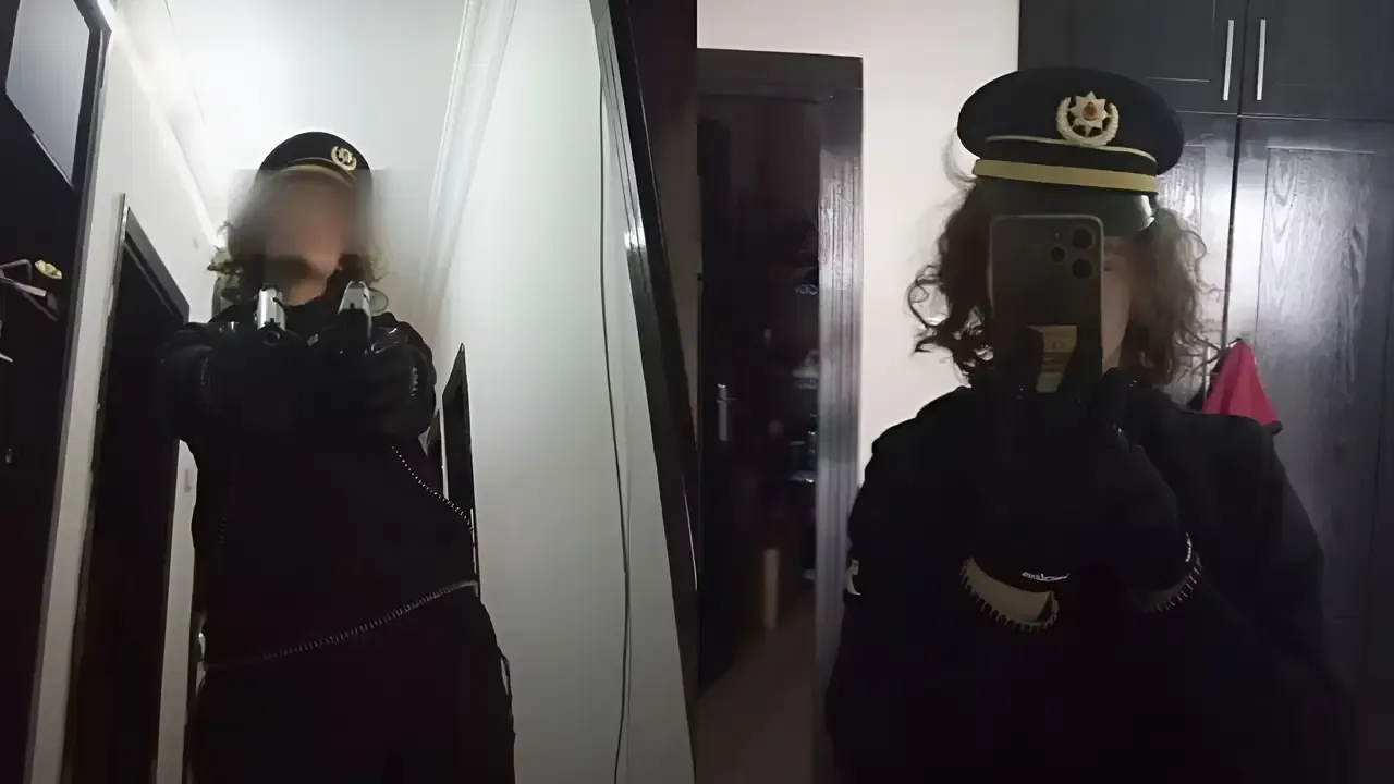 Saldırganın fotoğraflardan birinde aynanın karşısında çektiği özçekimde, tutuklanan polis başmüfettişi babası Uğur Mersinli'ye ait olduğu değerlendirilen polis tören şapkasını taktığı görülüyor.