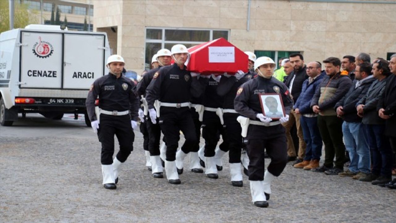 Polis memuru Kayar'ın Türk bayrağına sarılı naaşı, tören için İl Emniyet Müdürlüğüne getirildi.