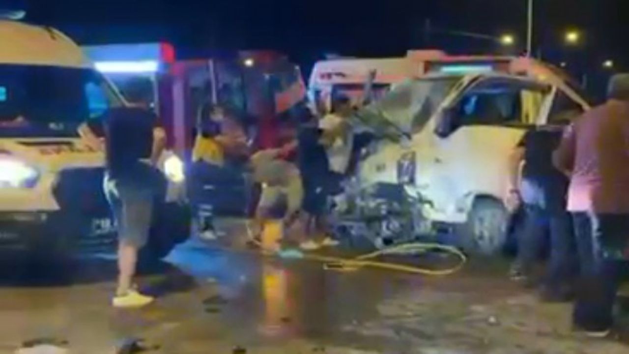 Kazada kamyonet sürücüsü Ferhat K. ile yanında bulunan kadın ve minibüste bulunan 6 işçi yaralandı. Kazayı gören çevredekiler kamyonette sıkışan sürücü ile yanında bulunan kadını kurtarmaya çalışırken, durumu sağlık ekiplerine bildirdi. İhbar üzerine olay yerine çok sayıda sağlık, itfaiye ve polis ekibi sevk edildi. İtfaiye ekiplerinin çalışmasıyla kamyonette sıkıştıkları yerden çıkarılan sürücü ile yanındaki kadın sağlık ekiplerine teslim edildi. Sağlık ekiplerince olay yerinde ilk müdahalesi yapılan yaralılar ardından çevredeki hastanelere sevk edildi. Olası bir başka kaza ihtimaline karşı polis ekipleri yol üzerinde önlem aldı.