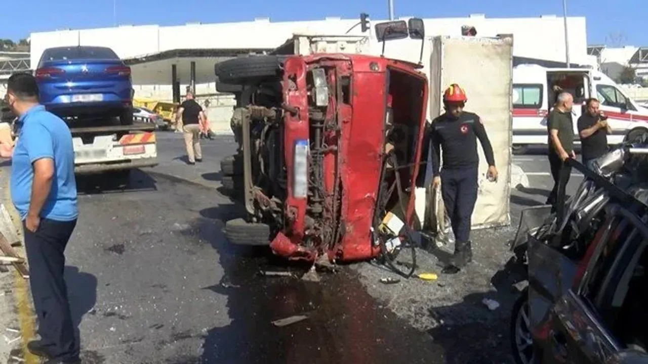 Cadde üzerinde trafik ışıklarında bekleyen 5 araca çarpan kamyonet daha sonra karşı yönde kırmızı ışıkta bekleyen 4 araca daha çarpıp devrildi.