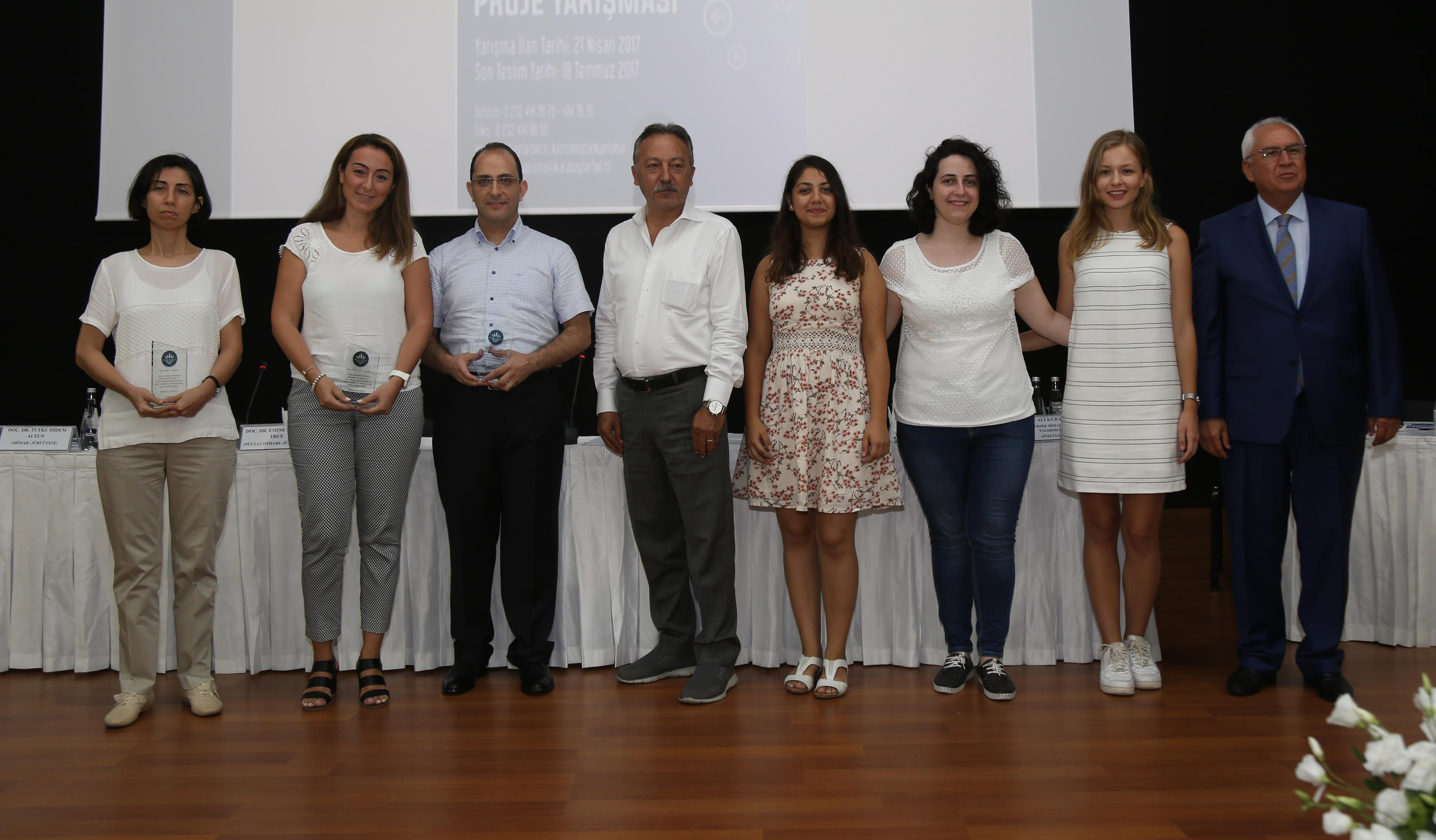 Konuşmaların ardından ödül törenine geçildi. Yarışmanın birincisi olan 4 sıra numaralı projenin ekibi Ebru Yılmaz, Uğur Bozkurt, Asiye Asil Yurtsev yardımcıları Nilcan Solak,Aslıhan Çevik, Merve Çelik ve Beyza Beydilli plaketlerini, Başkan Muhittin Selvitopu ve Milletvekili Tacettin Bayır'ın elinden aldı. Proje ekibi ayrıca 75 bin TL. para ödülü kazandı. Yarışmanın 2.liği Mete Keskin, Esra Yılmaz Keskin, Sevim Pelin Özkan,Öykü Kocaman ve yardımcıları Nusret Uşun,Aylin Özkan ve Abdülkadir Keleş'den oluşan 10 sıra numaralı proje ekibi elde etti. Plaketi Başkan Muhittin Selvitopu'nun elinden alan ekip aynı zamanda 50 bin TL'lik bir para ödülü de kazanmış oldu. Yarışmanın 3.lüğünü ise Erhan Vecdi Küçükerbaş,Elvan Barboros Ersan ve İrem İnce' den oluşan 8 sıra numaralı proje ekibi elde ederken, ekibe ödülünü jüri başkanı Prof. Dr. Emel Göksu verdi. Ekip aynı zamanda 35 Bin TL'lik para ödülünü de almaya hak kazandı. Ayrıca törende mansiyon ve jüri tarafından da satın alınan eserlerin sahiplerine de plaketleri gelen konuklar tarafından verilirken, mansiyonlara toplam 15 Bin TL, satın alma için 4 adet esere toplam 20 Bin TL para ödülü verildi.